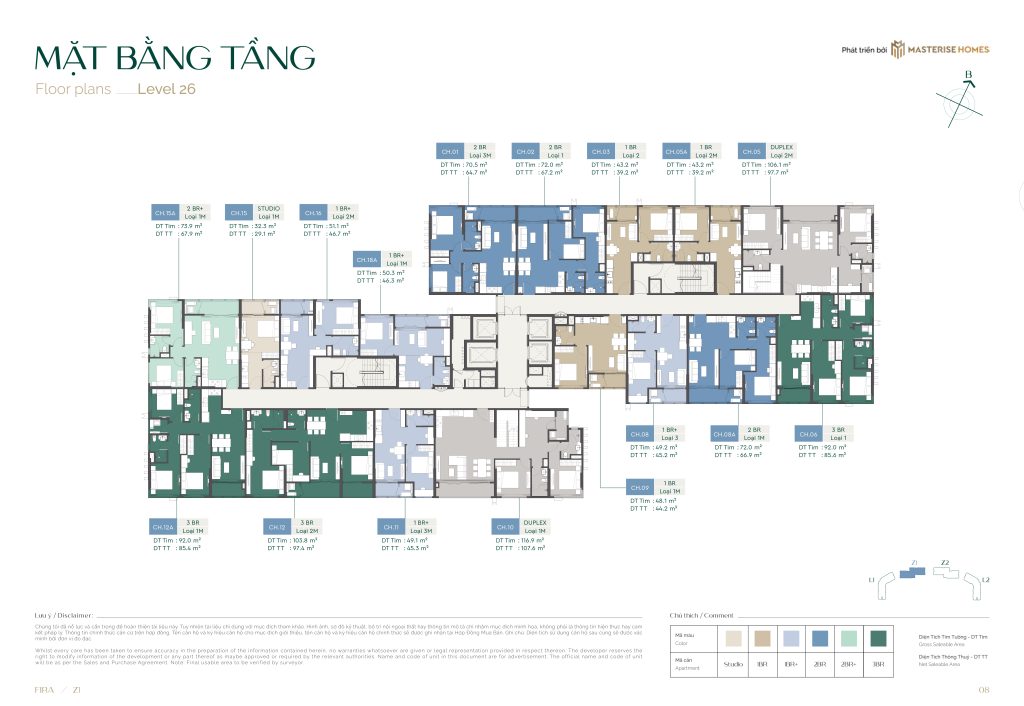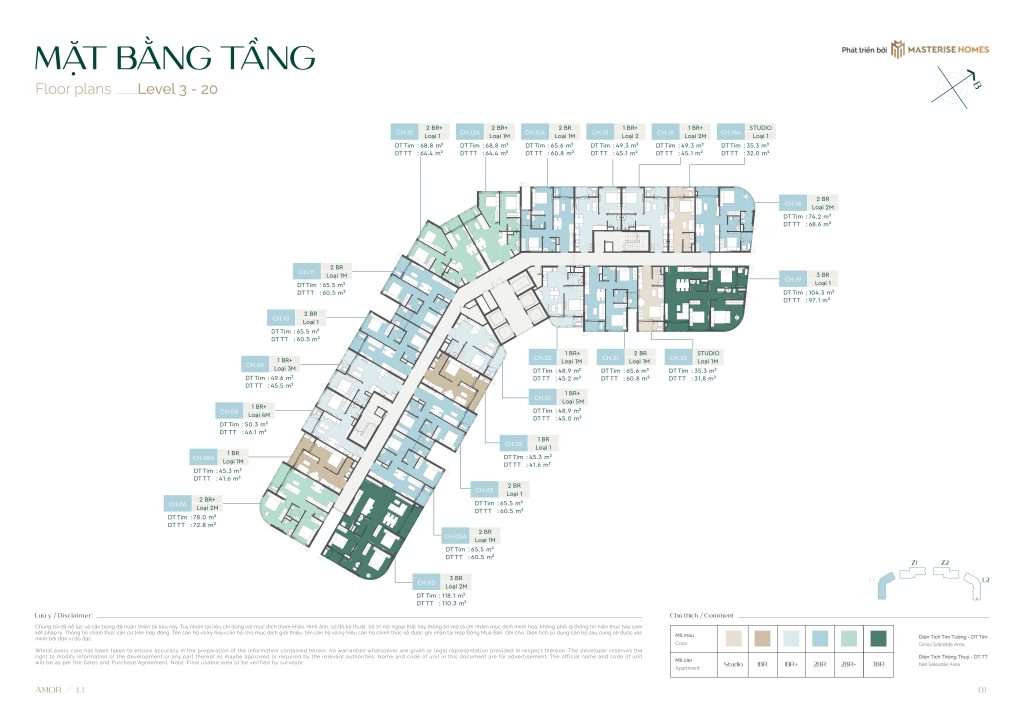 | Studio | 29,1 – 31,9 m2 | 2,35 tỷ | 2,87 tỷ |