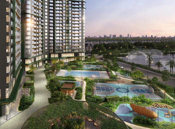 - Sân thể thao đa năng: Gồm bóng rổ, cầu lông với tổng diện tích 500m².