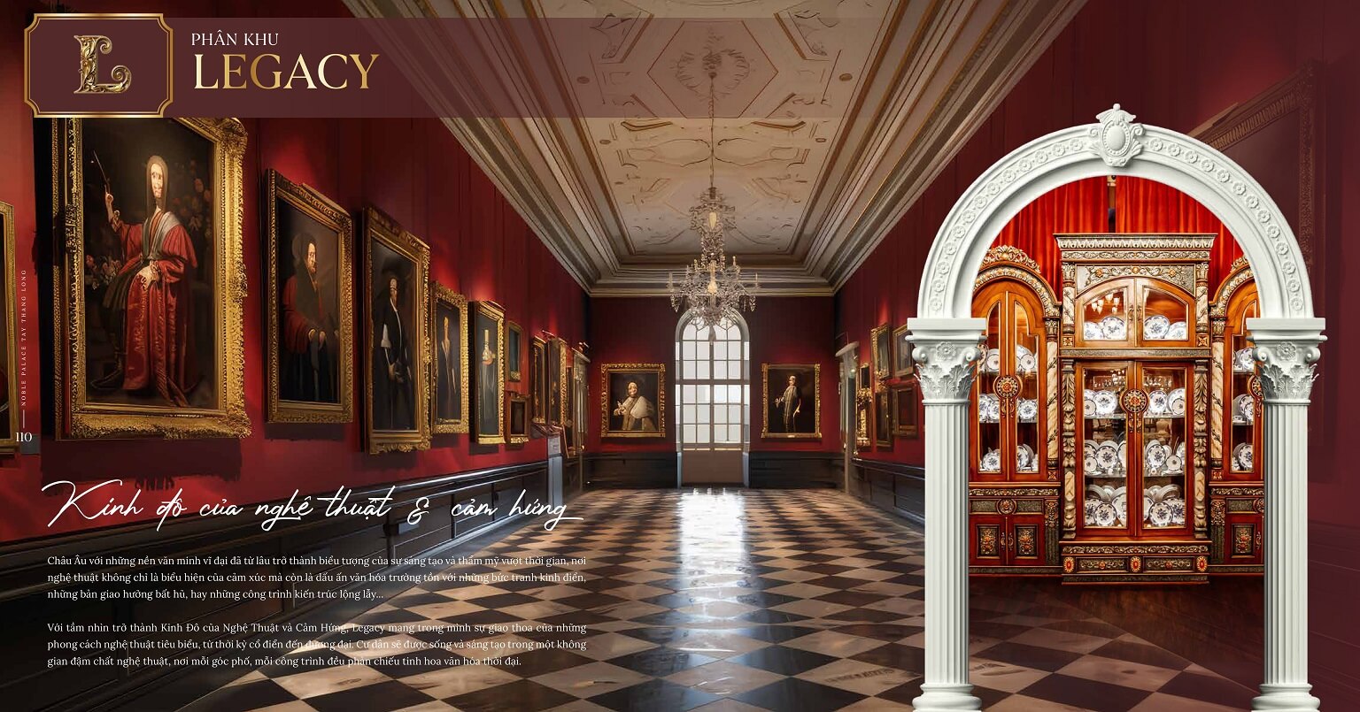 Là cầu nối giữa nghệ thuật và con người, nơi quá khứ và hiện tại giao thoa, tôn vinh những giá trị tinh hoa nghệ thuật châu Âu, từ kiến trúc, văn học, điện ảnh, đến hội họa… Legacy lưu giữ và phát huy những di sản nghệ thuật vượt thời gian.